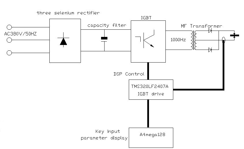 Secondly, IGBT switches convert the current into a mid-frequency current of 1000 Hz and transmit it to the welding transformer.