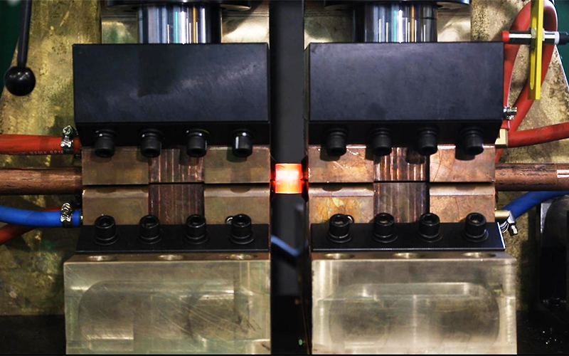 Flash butt welding is a rapid welding process that uses high current to quickly melt the workpieces, applying pressure to form a solid-phase connection. It is commonly used for welding large cross-sectional areas of metal rods, sheets, and pipes, with maximum areas reaching 20,000mm² and above. During the discharge welding process, sparks are produced at the contact point, hence the name flash butt welding. It can weld high carbon steel, stainless steel, aluminum alloys, and can also weld dissimilar metals such as copper and aluminum.